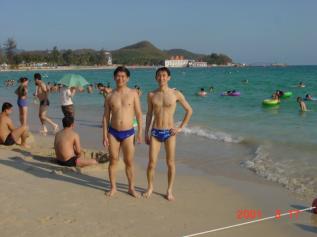 研修に付き合ってくれた覃さん、邱さんの二人が「ここの観光名所は海です」というので、いつの間にか泳ぐことに決定した。邱さんは何故かカメラ係ということで、覃さんと男二人力任せに泳ぎ、疲れた。覃さんは「中国では男がビキニである。」と強調していた。確かに皆そうだった。